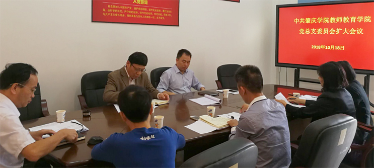本网讯 10月18日,教师教育学院党总支召开扩大会议,落实第一议题学习制度,专题学习习近平新时代中国特色社会主义思想、党的十九大精神和习近平总书记重要讲话精神。