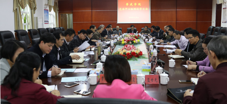 校党委副书记、校长和飞,校党委副书记叶峥嵘,校党委副书记、纪委书记黄劲松,副校长周苏平,副校长王忠,副校长林俊睦,校党委委员,中心组成员出席学习会。