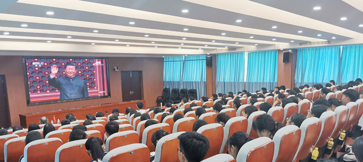 我校师生集体观看新中国成立70周年阅兵和群众游行直播