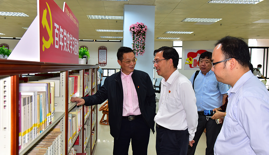 杨衍江介绍了图书馆“百年党史”学习园地的建设情况。经过场地布置、书架搭建与书籍挑选,目前学习园地已经初步建设完毕,对学校师生开放。学习园地囊括了包括党史、新中国史、改革开放史、社会主义发展史的“四史”文献近5000册。在后续的工作中,图书馆还将不断完善园地建设,加强图书选购,保持书籍常新,并完善“读者荐书”机制,让学习园地成为学校开展党史学习教育的重要基地。