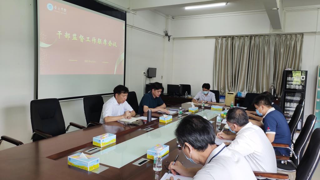 本网讯  6月8日,我校召开干部监督工作联席会议,校党委副书记谢冠华出席并讲话。组织部、纪检监察室、人事处、审计处、工会等联席会议成员单位主要负责人参加会议,会议由党委委员、组织部部长欧洪湛主持。