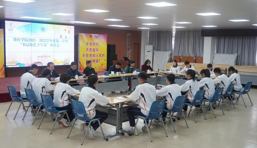 本网讯 12月23日,我校举办2021-2022学年度第一学期“书记校长下午茶”座谈会。校长吴业春、校党委副书记谢冠华出席,学工处、就业处、教务处、团委等有关职能部门负责人,以及来自各二级学院的学生代表参加活动。
