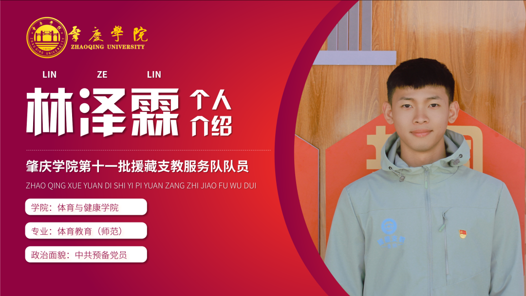简介:现任肇庆学院第十一批援藏支教志愿服务队临时党支部宣传委员,音乐学学生第二党支部副书记,2021级新生带班党员、肇庆学院第八期砚园班成员,曾获国家奖学金与三好学生标兵,肇庆学院诵写讲大赛一等奖等荣誉。