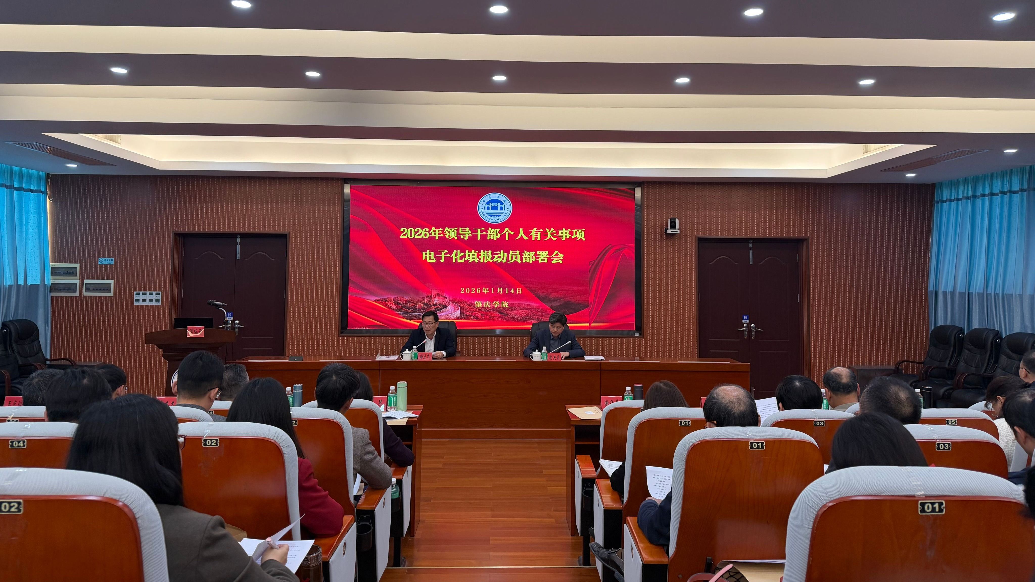 本网讯 1月14日,我校召开2026年领导干部个人有关事项电子化填报动员部署会,深入贯彻落实全面从严治党要求,部署推进电子化填报工作。校党委书记谢冠华出席会议并讲话,校党委副书记、组织部部长欧洪湛主持会议。校领导、党委委员,党政管理部门、群团组织及各二级党组织等负责人,以及五级、六级职员共100余人参加会议。
