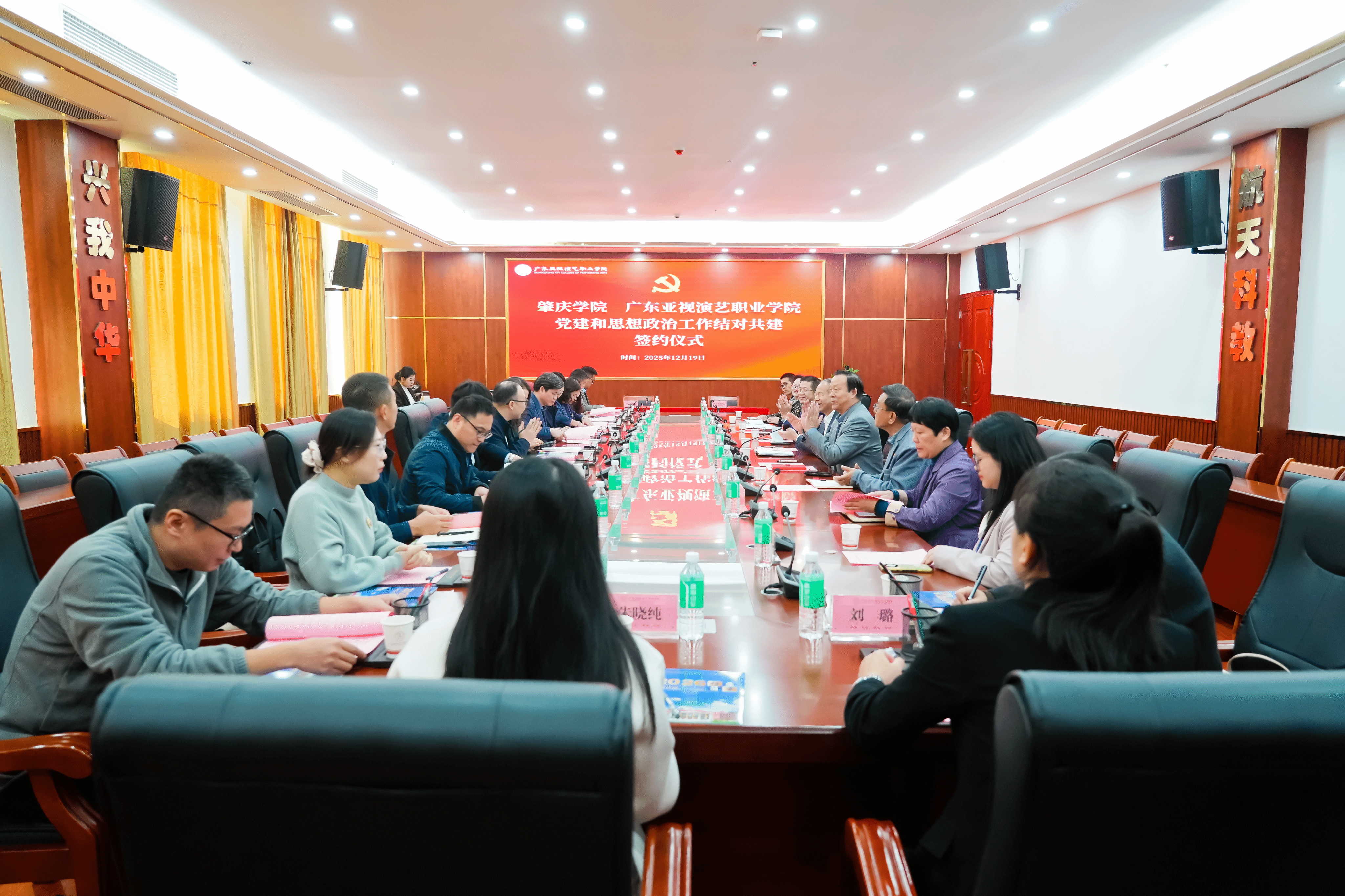 本网讯 12月19日,校党委副书记、校长李琴率队前往广东亚视演艺职业学院,共同签订党建和思想政治工作结对共建协议。校党委副书记、组织部部长欧洪湛,党委委员、宣传统战部部长、党政办公室主任陈前,广东亚视演艺职业学院党委书记谭冠中,党委副书记、校长丁孝智,党委副书记、宣传部部长薛桂荣出席,组织部、宣传统战部、发展规划部等相关职能部门负责人及结对共建工作小组相关工作人员参加。李琴出席会议并讲话,丁孝智主持会议。